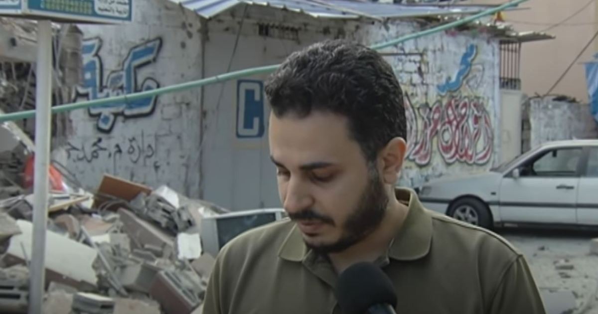 بدموع الحسرة، تفقد المواطن الفلسطيني شعبان سليم، أنقاض مكتبته التي دمرها طيران الاحتلال الإسرائيلي بعد قصف بناية (كحيل) المكونة من 5 طوابق أمس الثلاثاء في قطاع غزة.