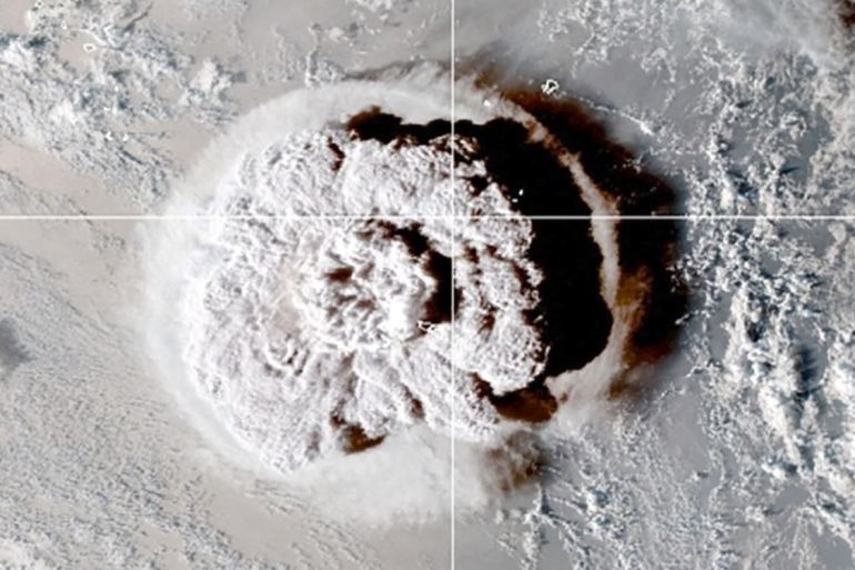 أظهرت صور عبر الأقمار الاصطناعية لحظة ثوران بركان (هونغا تونغا- هونغا هاباي) تحت الماء، الذي بدا كأنه تجربة نووية.