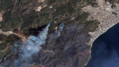 التقط القمران الصناعيان التركيان (غوكتورك-1) و(غوكتورك-2) صورًا عالية الدقة من الفضاء لحرائق الغابات في ولايتي أنطاليا وموغلا. ونشرت وزارة الدفاع التركية، الأحد، صورًا ملتقطة من القمرين تظهر المساحة الواسعة المحترقة في غابات قضائي (مناوغات) بأنطاليا و(مرمريس) في موغلا. وقالت مصادر مطلعة إن الصور الفضائية تم إرسالها إلى الوزارات التركية المشاركة…