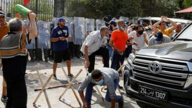 شاهد: تونسيون يتبادلون رشق الحجارة أمام مقر البرلمان والأمن يتدخل